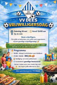 Beste vrijwilligers, Om jullie te bedanken voor jullie geweldige inzet organiseert VV DEES een gezellige vrijwilligersdag! Een dag vol plezier, ontspanning en samenzijn, speciaal voor iedereen die onze club zo bijzonder maakt. 📅 Wanneer: Zaterdag 16 mei🕒 Tijd: Vanaf 15:00 uur📍 Locatie: Op de club Neem gerust je partner en kinderen mee, er is volop …
